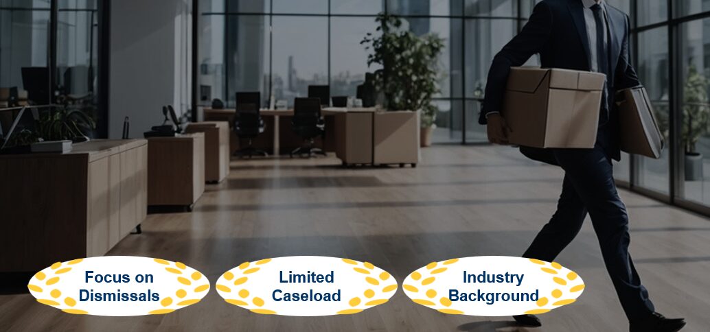 With a background in top consulting firm, global investment bank and IT, our attorney is well-versed in the dynamics of headcount reduction. Our insights allow for identifying the legal issues straightaway and building compelling argument.